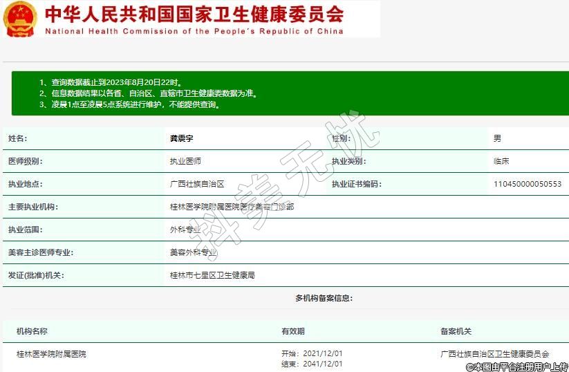 主要执业机构:桂林医学院附属医院医疗美容门诊部
