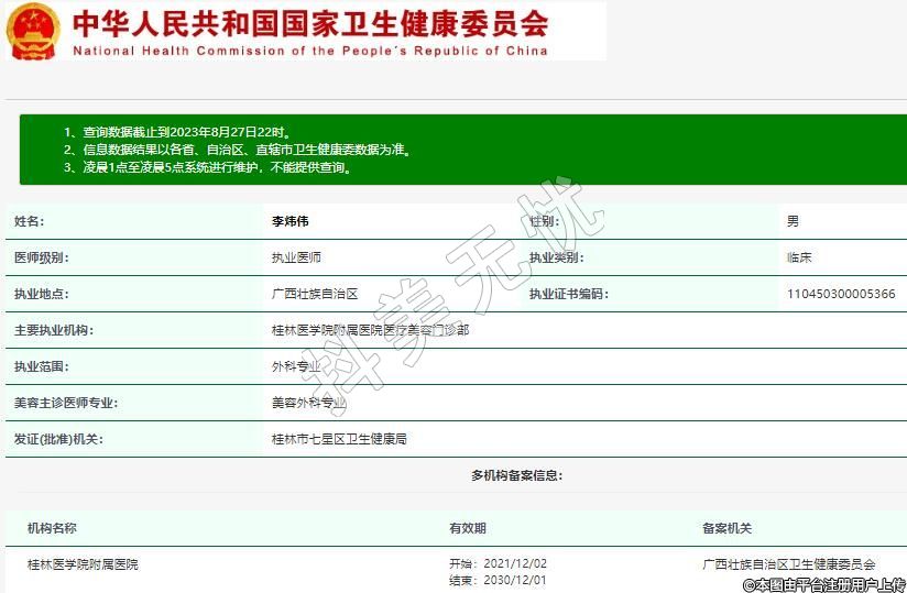 主要执业机构:桂林医学院附属医院医疗美容门诊部