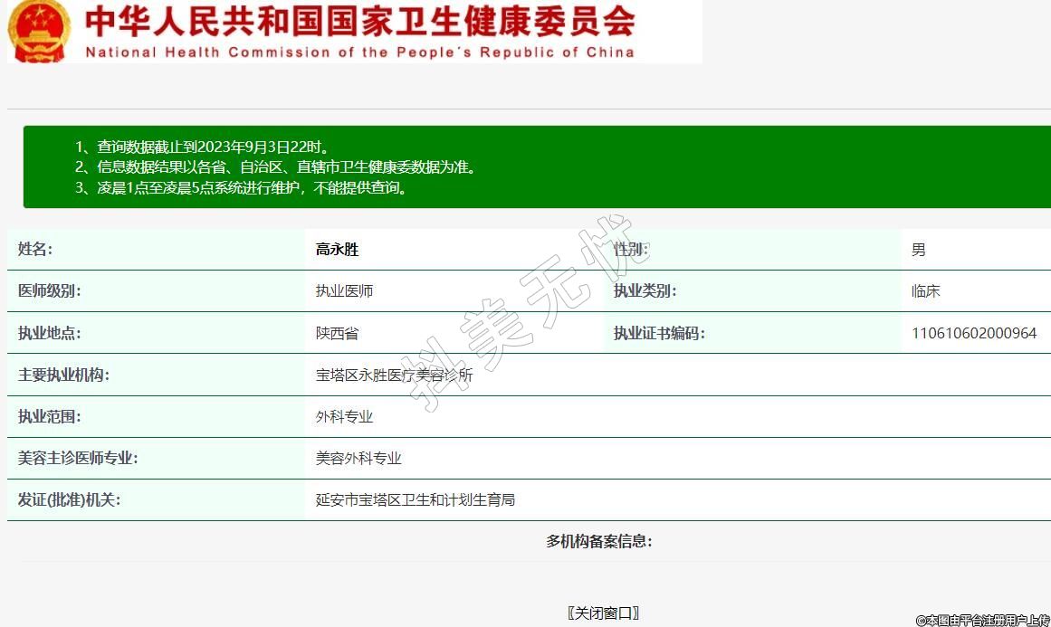 主要执业机构:宝塔区永胜医疗美容诊所