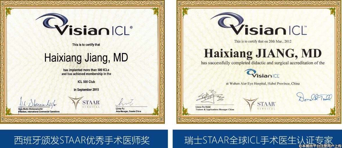 1、被录入瑞士staar 全球ICL 手术医生认证专家库