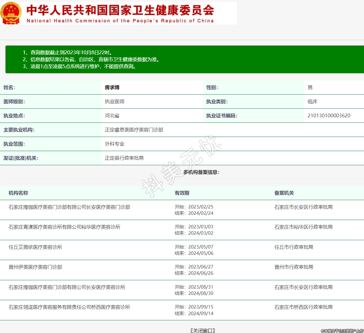 机构名称:晋州伊美医疗美容门诊部