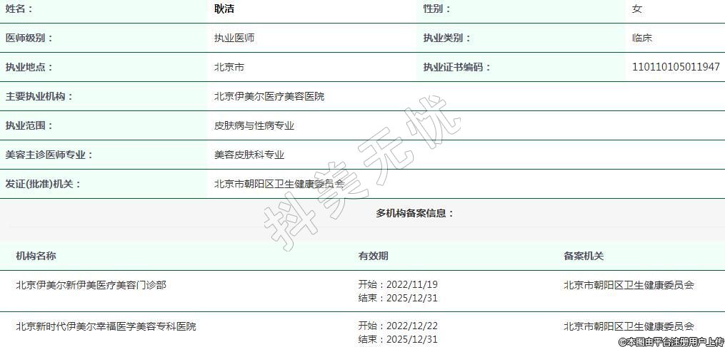 主要执业机构:北京伊美尔医疗美容医院