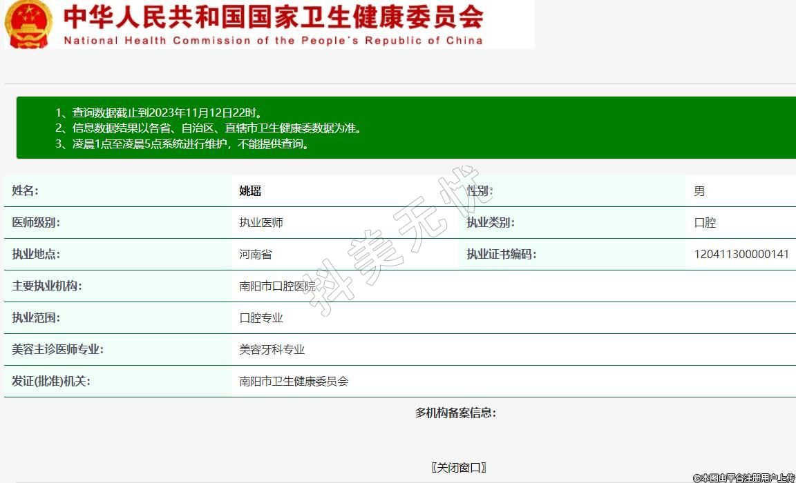 主要执业机构:南阳市口腔医院