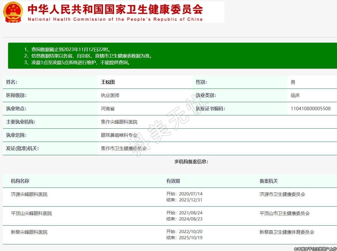 主要执业机构:焦作尖峰眼科医院