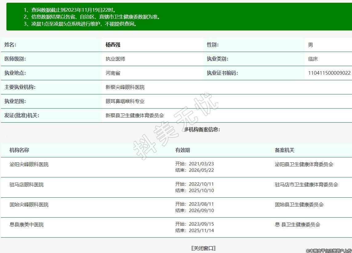 新蔡尖峰眼科医院院长 副主任医师,驻马店市中心医院原眼科知名专家、原开封市光明医院业务院长