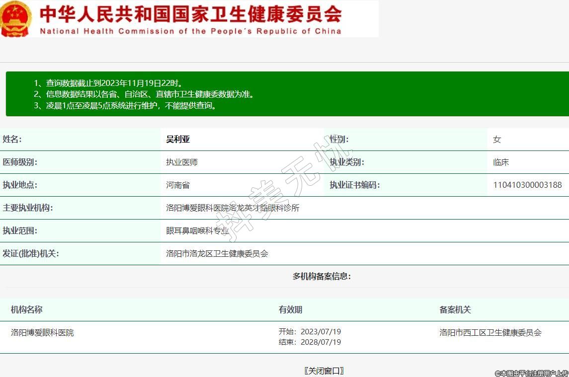 主要执业机构:洛阳博爱眼科医院洛龙英才路眼科诊所