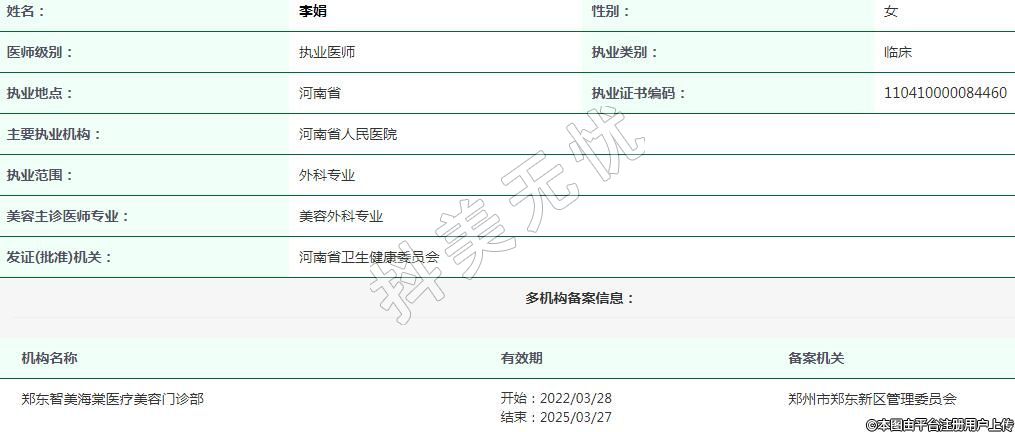 河南省人民医院整形美容执业医生