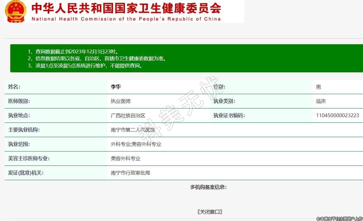 执业范围:外科专业;美容外科专业
