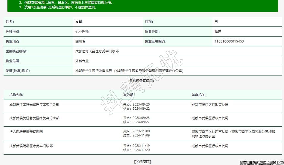 主要执业机构:成都恒博天姿医疗美容门诊部