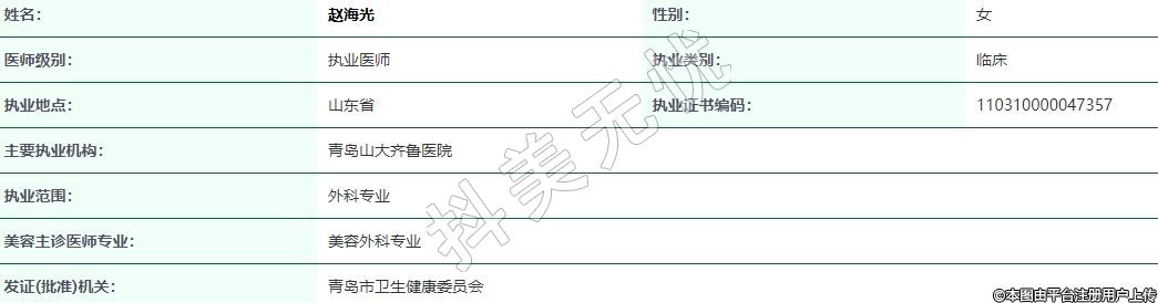 美容主诊医师专业:美容外科专业