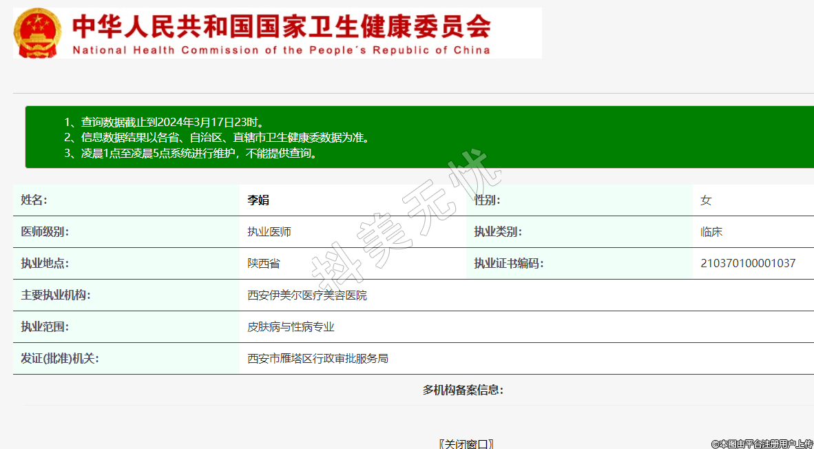 主要执业机构:西安伊美尔医疗美容医院