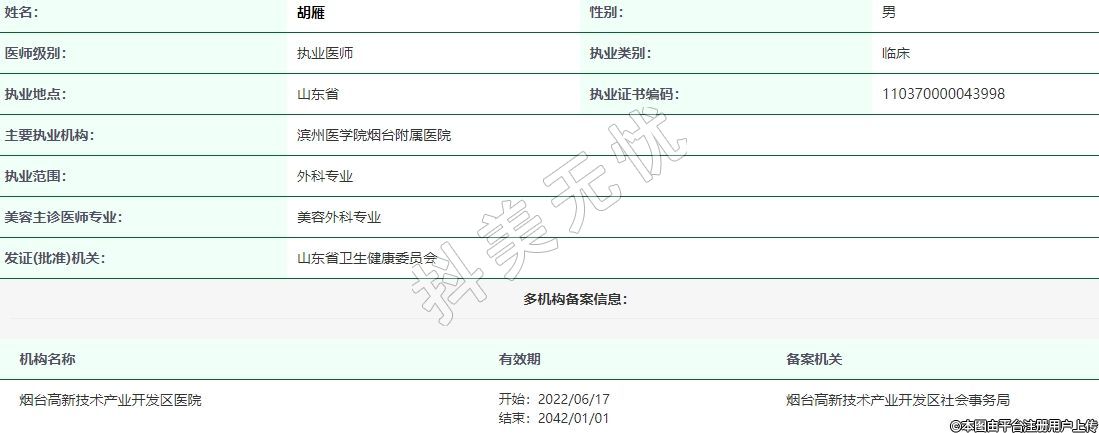 美容主诊医师专业:美容外科专业