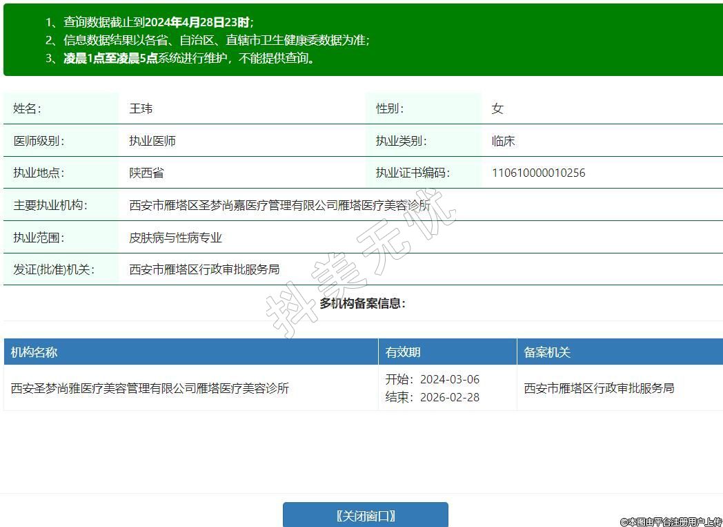 主要执业机构:西安市雁塔区圣梦尚嘉医疗管理有限公司雁塔医疗美容诊所