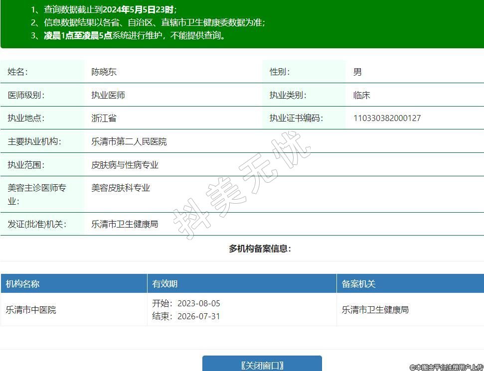 主要执业机构:乐清市第二人民医院
