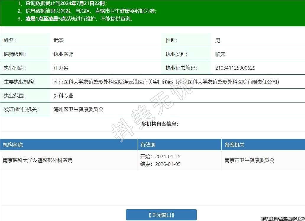 主要执业机构:南京医科大学友谊整形外科医院连云港医疗美容门诊部(南京医科大学友谊整形外科医院有限责任公司)