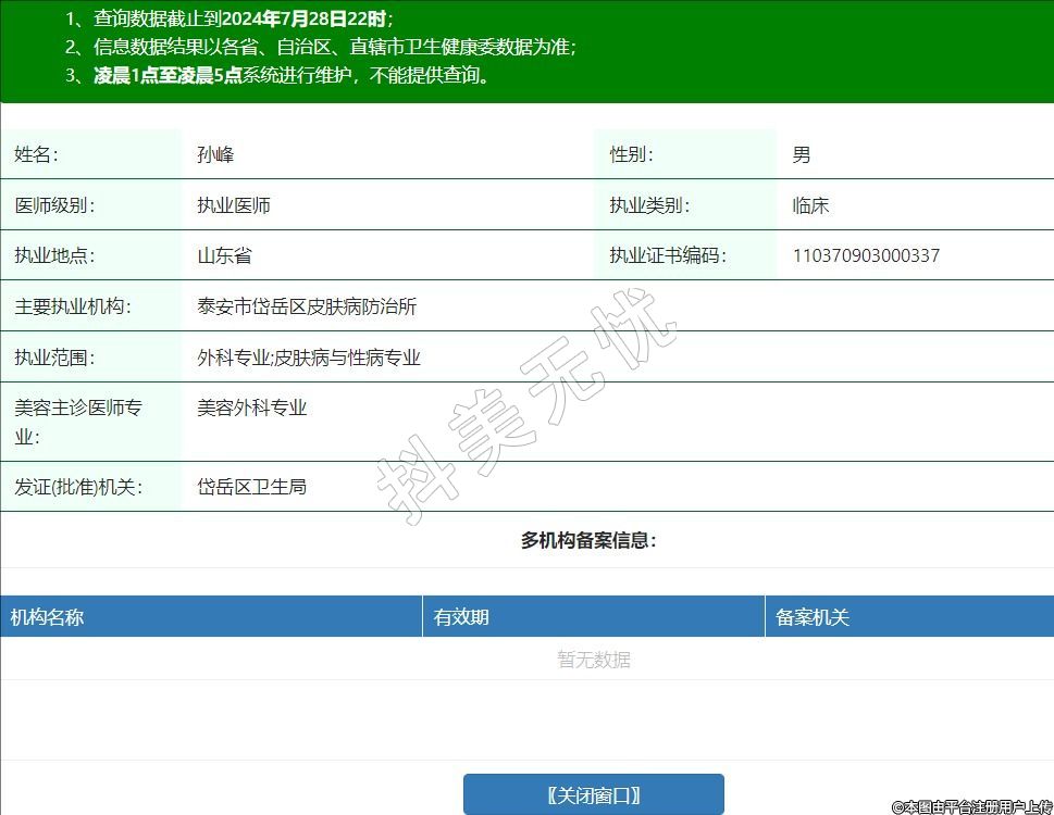 泰安市岱岳区皮肤病防治所医疗美容科主任医师
