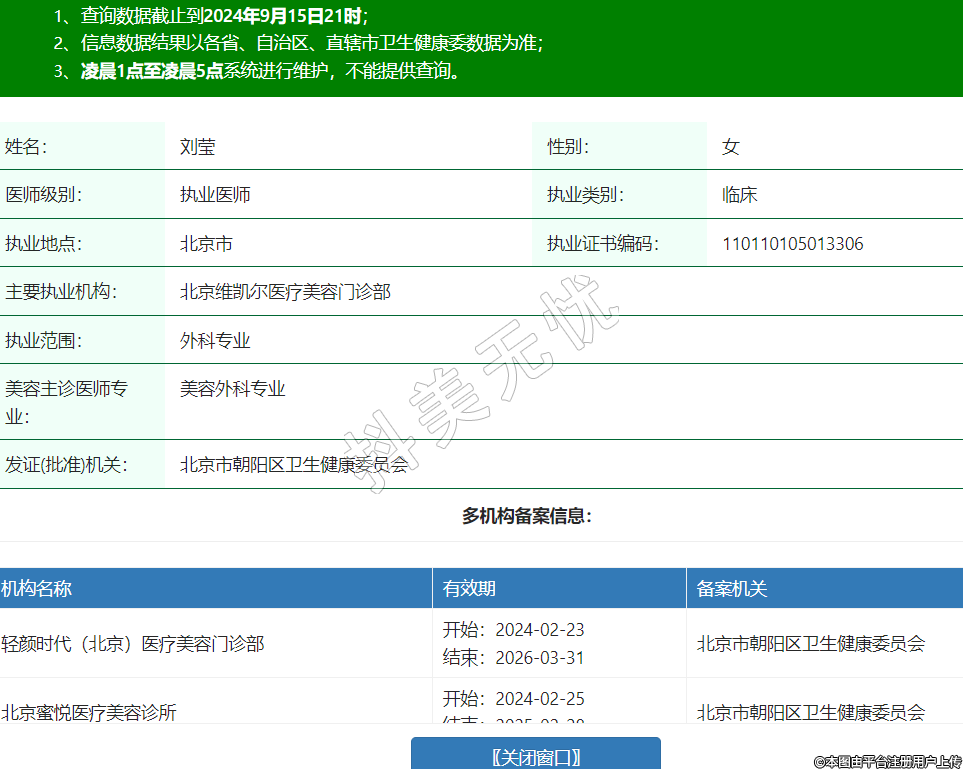 机构名称:轻颜时代(北京)医疗美容门诊部