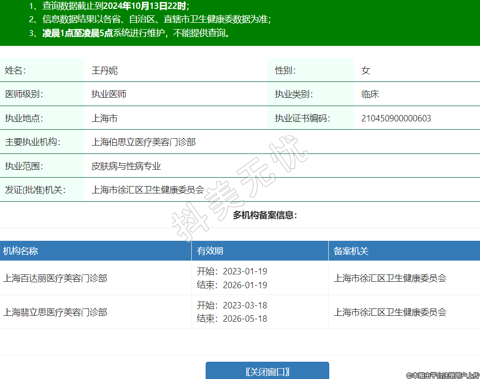 主要执业机构:上海伯思立医疗美容门诊部