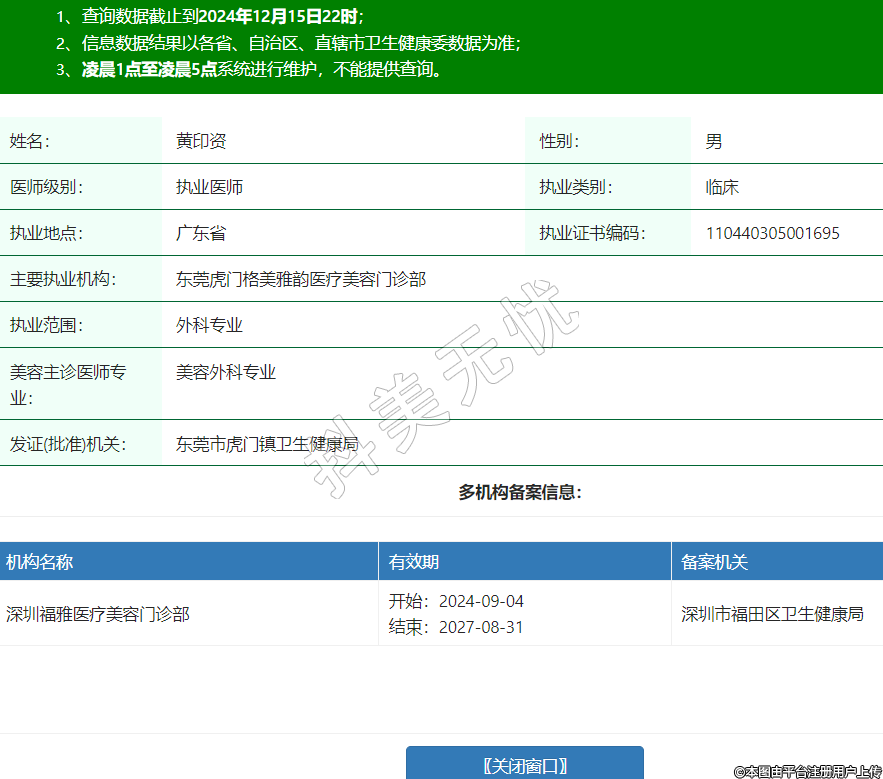 主要执业机构:东莞虎门格美雅韵医疗美容门诊部