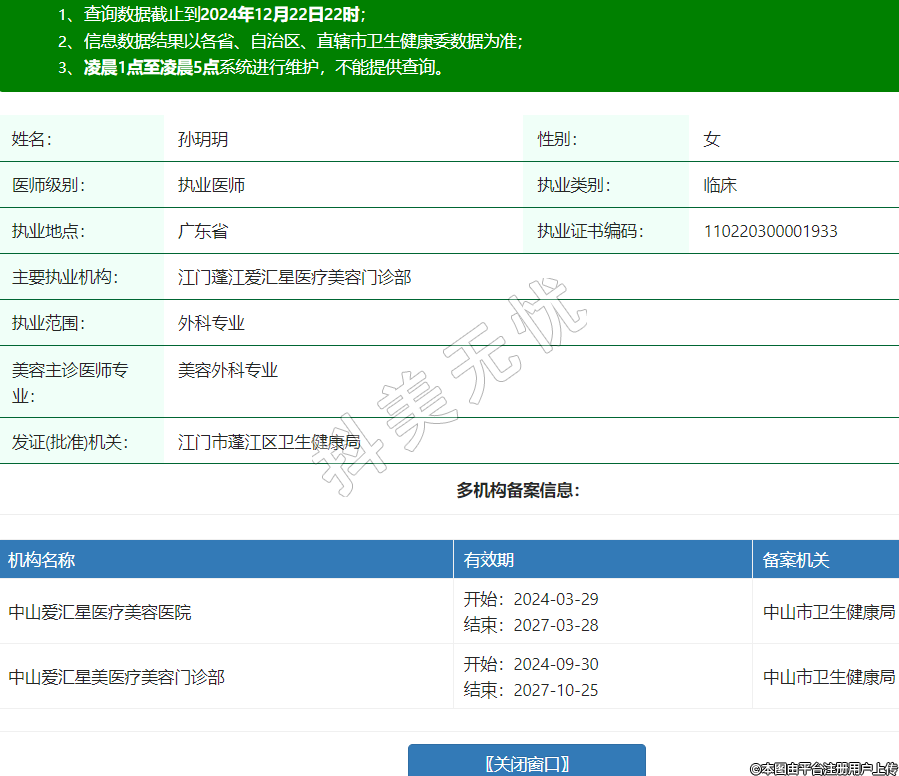 主要执业机构:江门蓬江爱汇星医疗美容门诊部