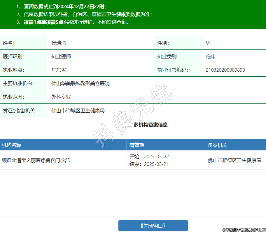 主要执业机构:佛山华美联城整形美容医院