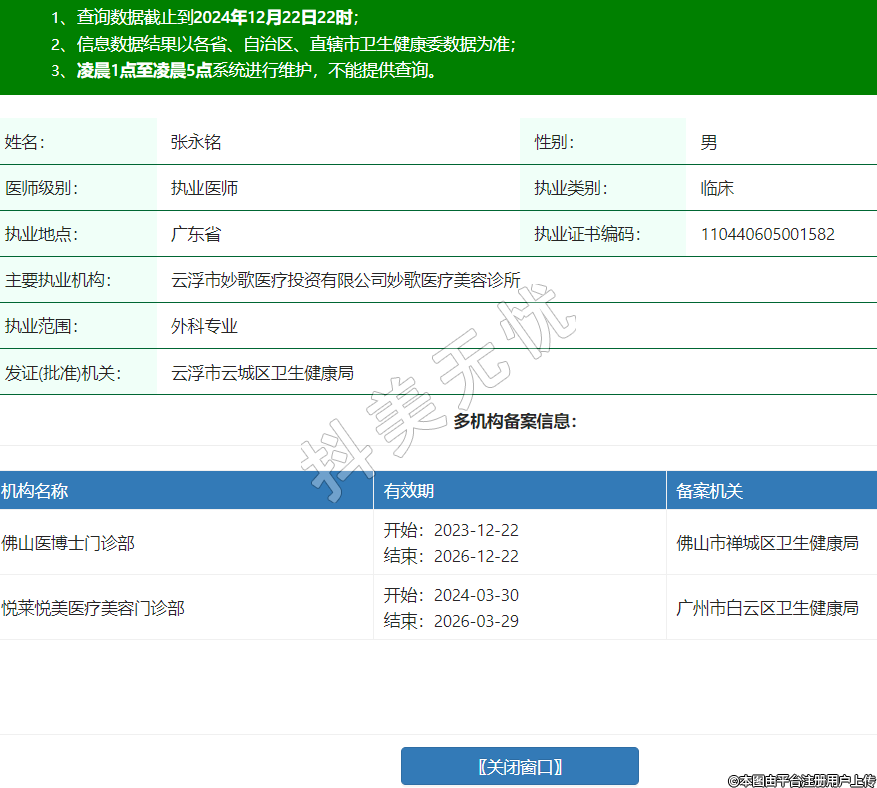 主要执业机构:云浮市妙歌医疗投资有限公司妙歌医疗美容诊所