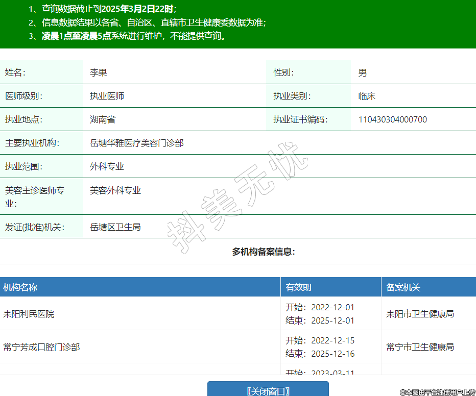美闺(长沙)医疗美容有限公司芙蓉美闺医疗美容门诊部