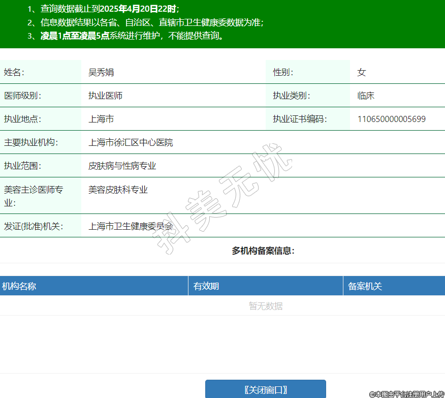 擅长项目:皮肤激光美容
