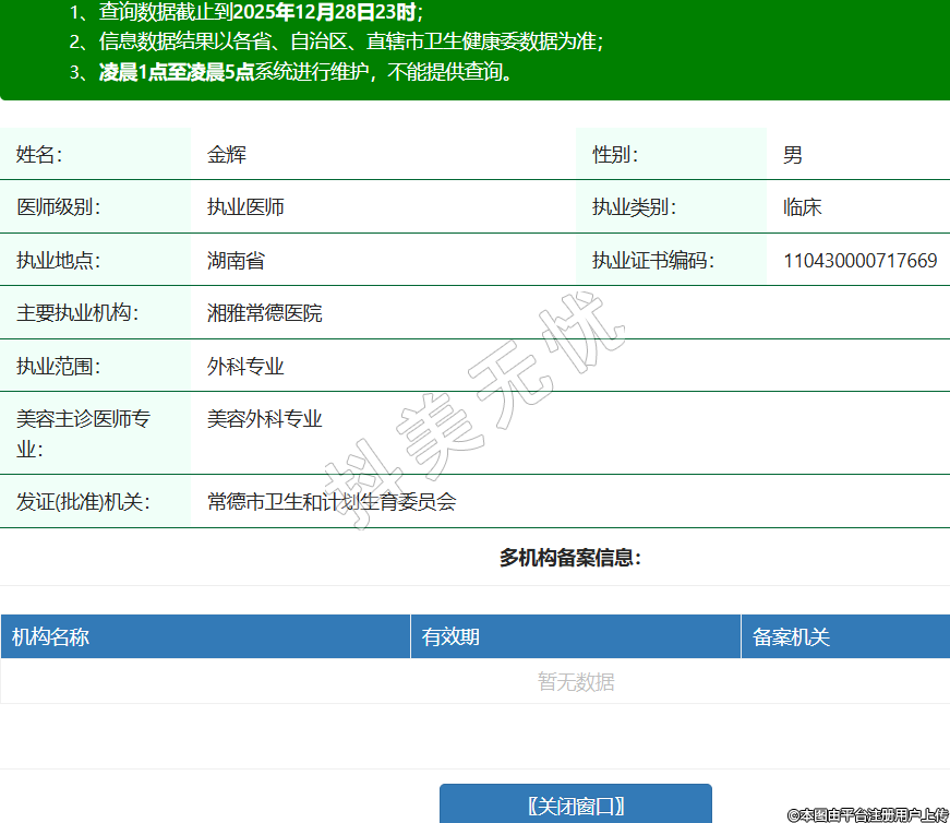 姓名:金辉性别:男医师级别:执业医师执业类别:临床执业地点:湖南省执业证书编码:110430000717669主要执业机构:湘雅常德医院执业范围:外科专业美容主诊医师专业:美容外科专业发证(批准)机关:常德市卫生和计划生育委员会 -