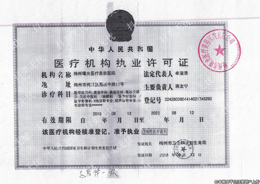 机构名称:梅州曙光医疗美容医院