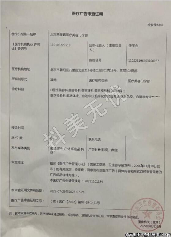 诊疗科目:医疗美容科;美容外科:美容皮肤科/麻醉科/医学检验科:临床体液、血液专业:临床化学检验专业:临床免疫、血清学专业******