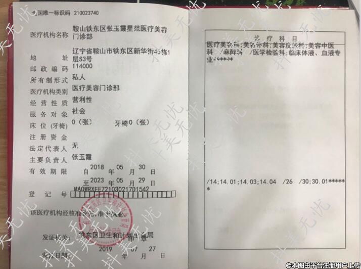 医疗机构名称:鞍山铁东区张玉霞星范医疗美容门诊部