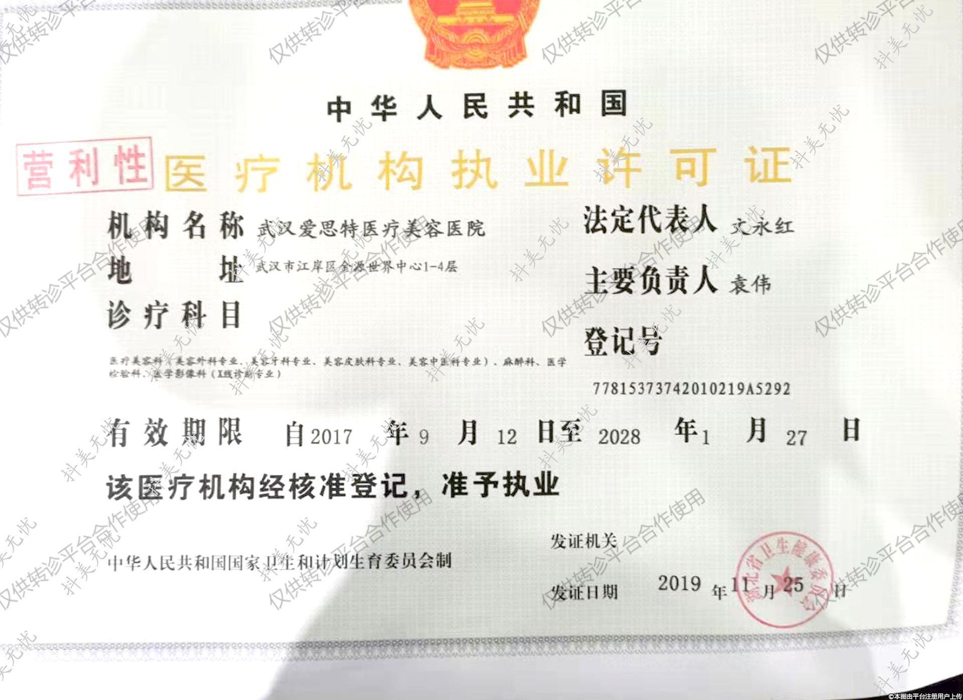 发证机关:湖北省卫生教康委员会