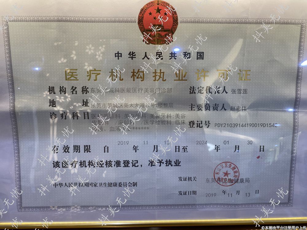 机构名称:东莞莞城科医能医疗美容门诊部