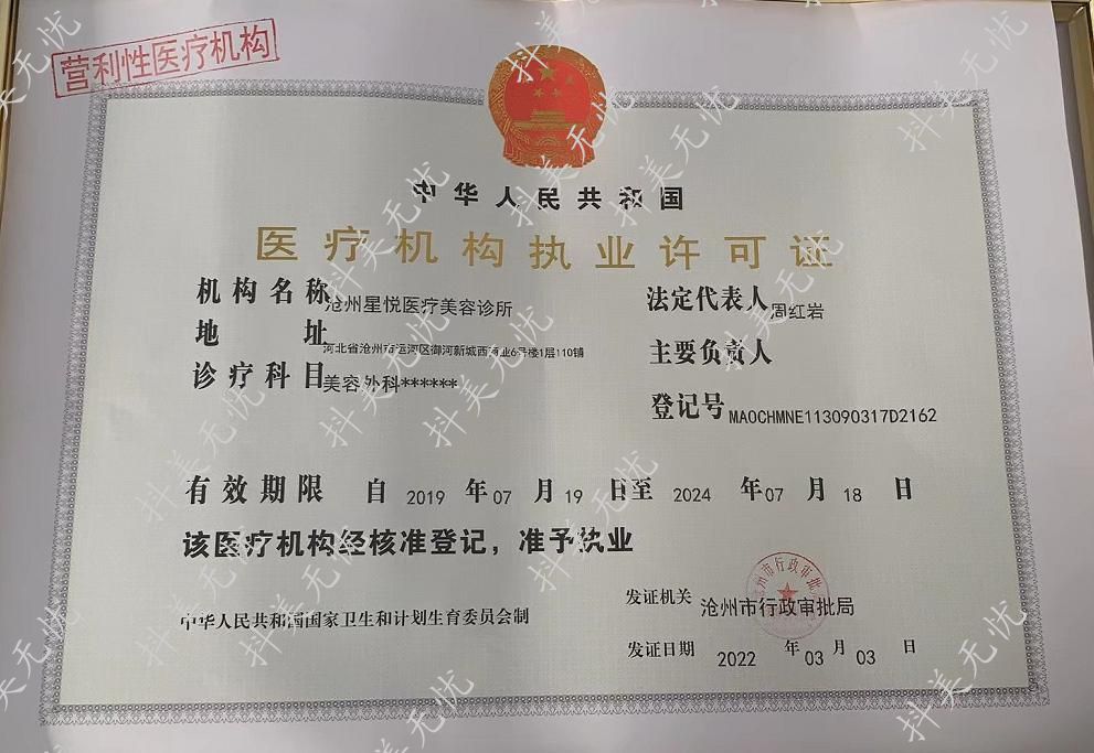 机构名称:沧州星悦医疗美容诊所