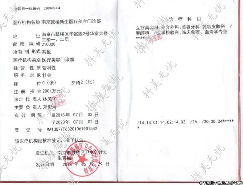 医疗机构名称:南京鼓楼新生医疗美容门诊部