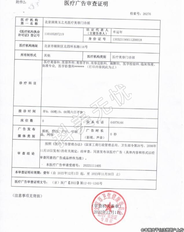 机构名称:北京润美玉之光医疗美容门诊部