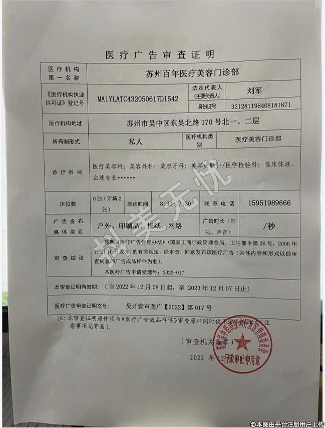 诊疗科目:医疗美容科;美容外科;美容牙科;美容皮肤科 /医学检验科;临床体液、血液专业******