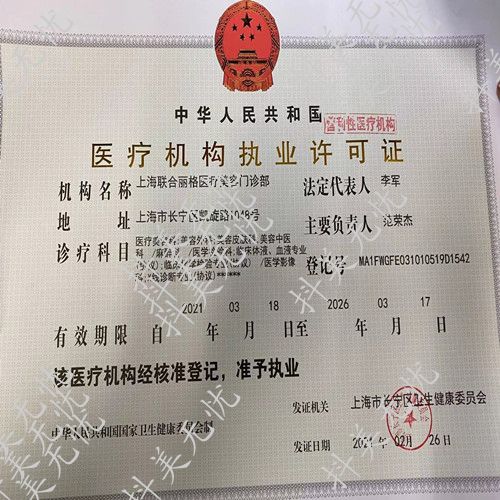 机构名称:上海联合丽格医疗美容门诊部