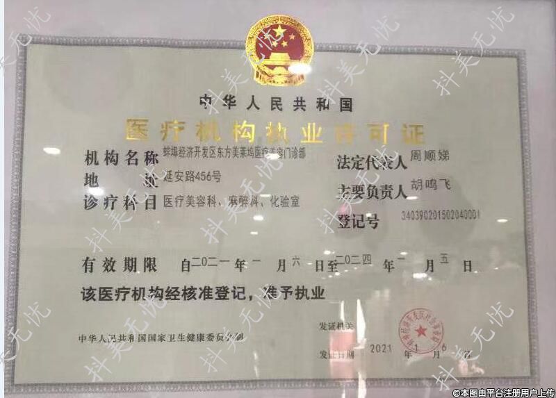 机构名称:蚌埠经济开发区东方美莱坞医疗美容门诊部