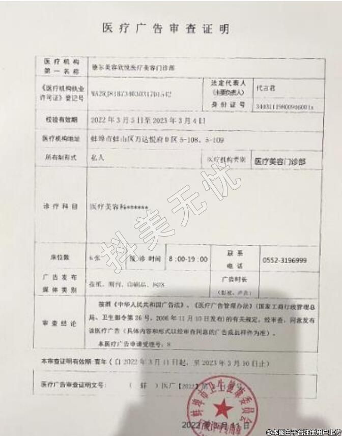 由蚌埠市卫健委审批核准的正规医疗机构,开展整外、皮肤、口腔、中医等四大科室。