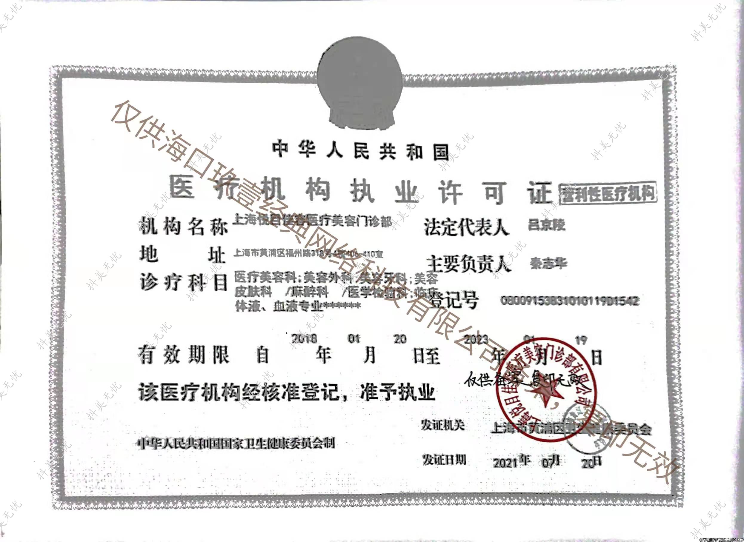发证机关:上海市黄浦区卫生健康委员会