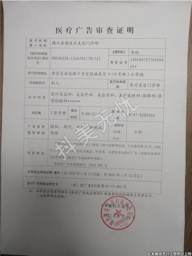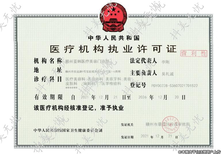机构名称:赣州亚韩医疗美容门诊部