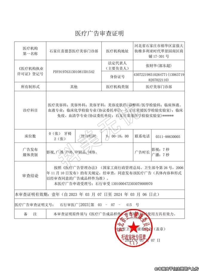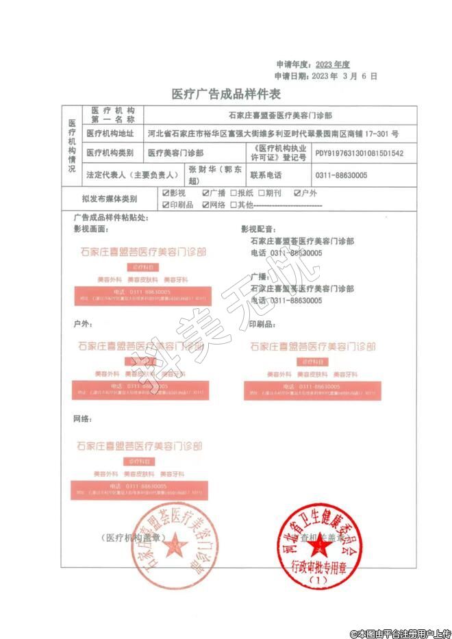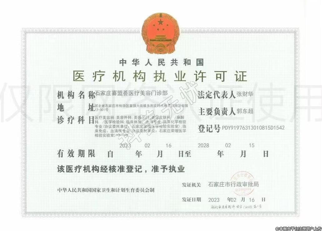 机构名称:石家庄喜盟荟医疗美容门诊部