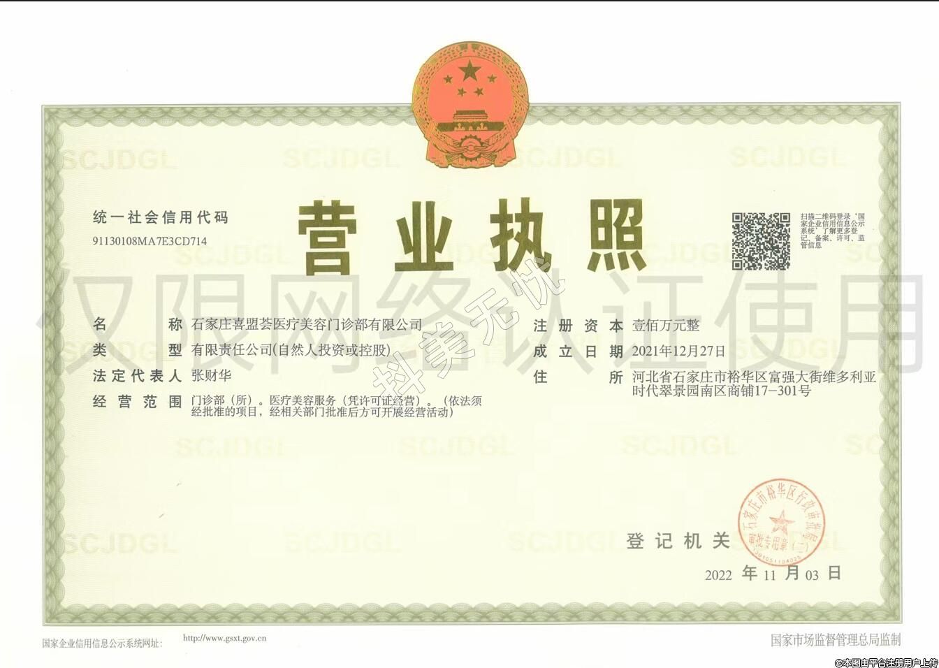 发证机关:石家庄市行政审批局