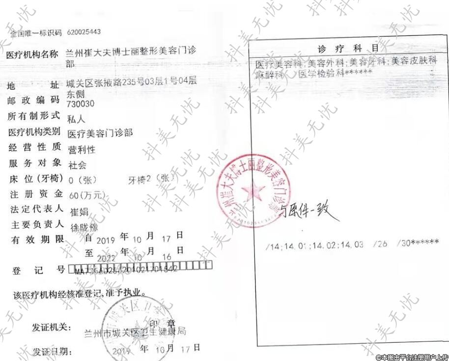 医疗机构名称:兰州崔大夫博士丽整形美容门诊部