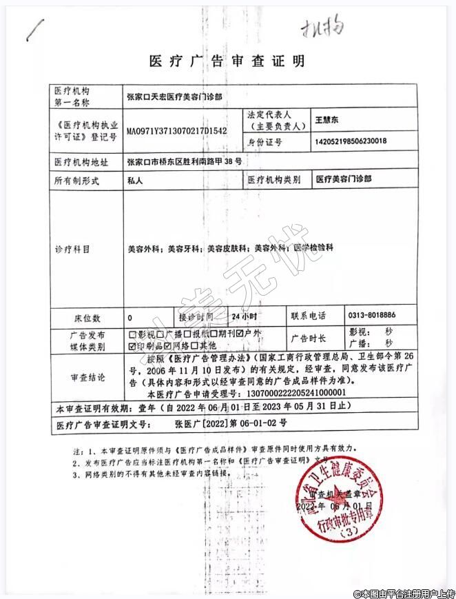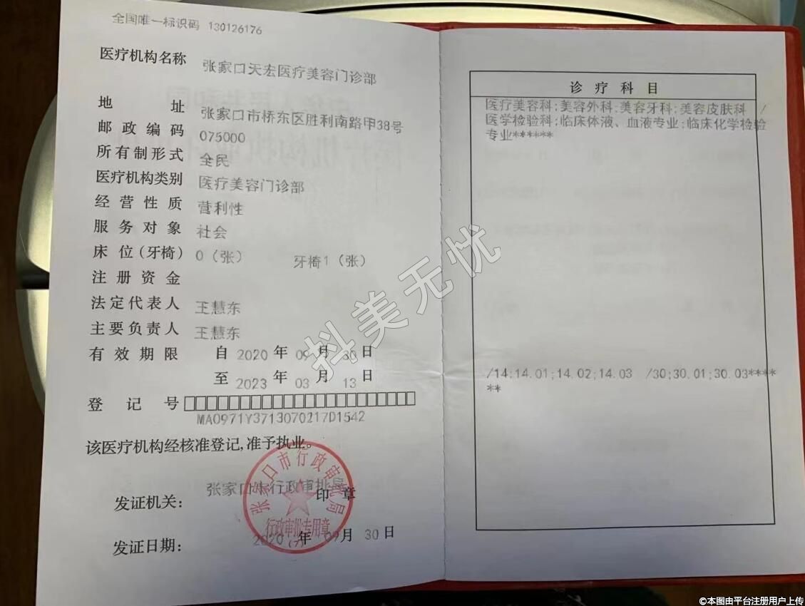 诊疗科目:医疗美容科;美容外科:美容牙科;美容皮肤科医学检验科;临床体液、血液专业:临床化学检专业******