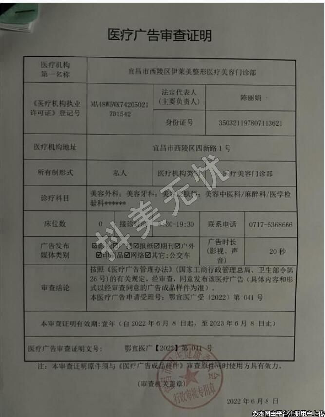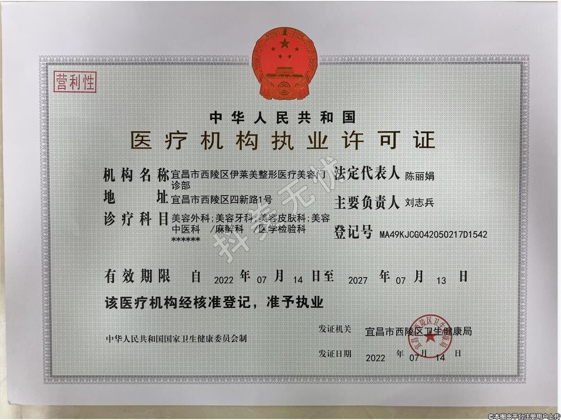 机构名称:宜昌市西陵区伊莱美整形美容门诊部