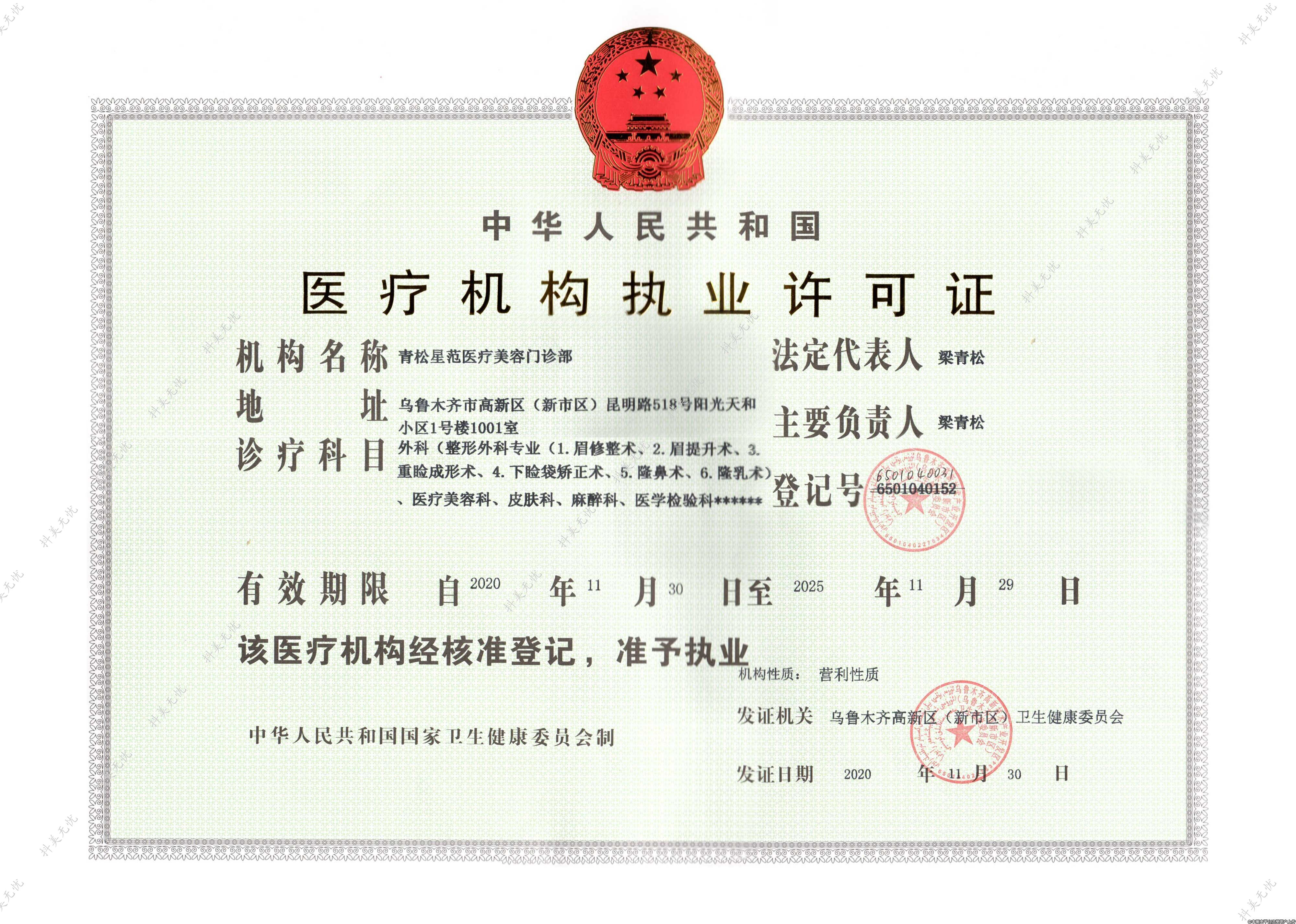 发证机关:乌鲁木齐高新区(新市区)卫生健康委员会