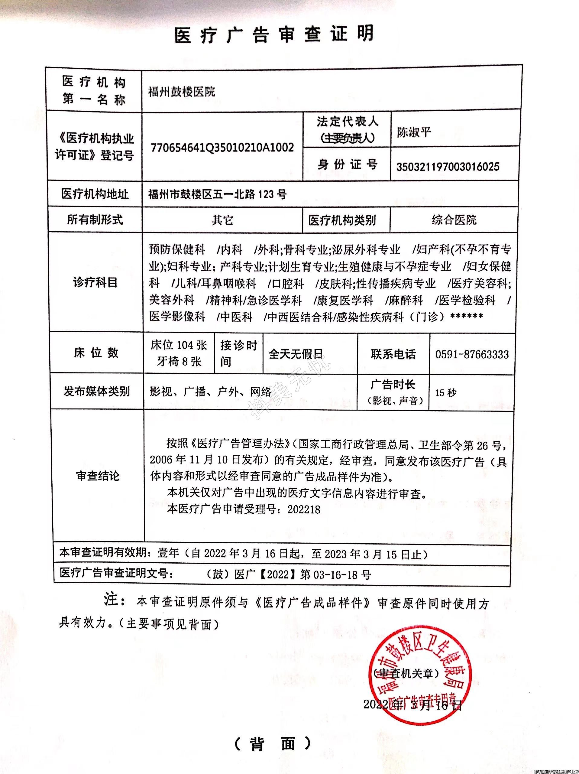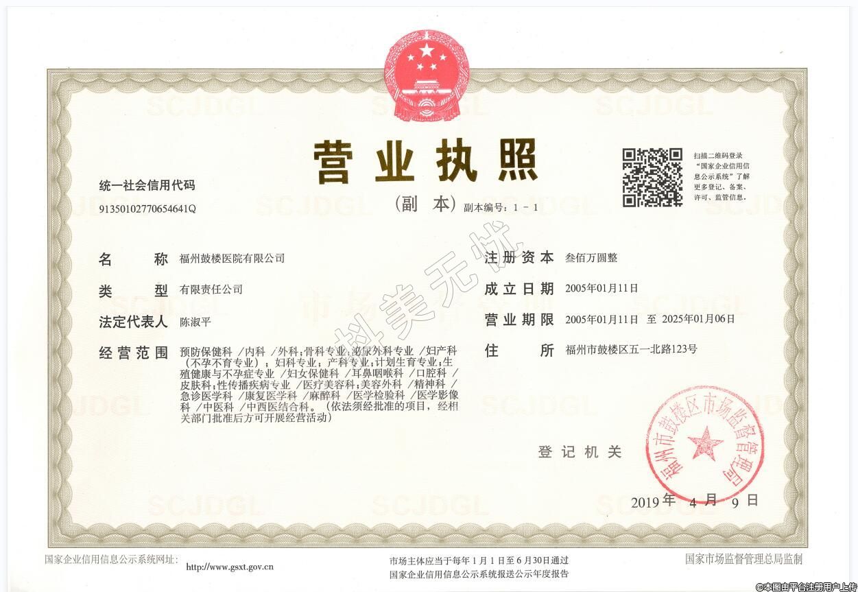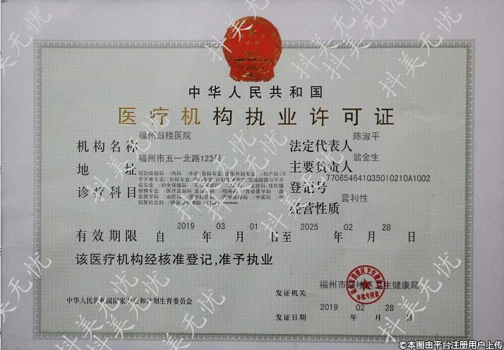 发证机关:福州市发楼区三生健康局